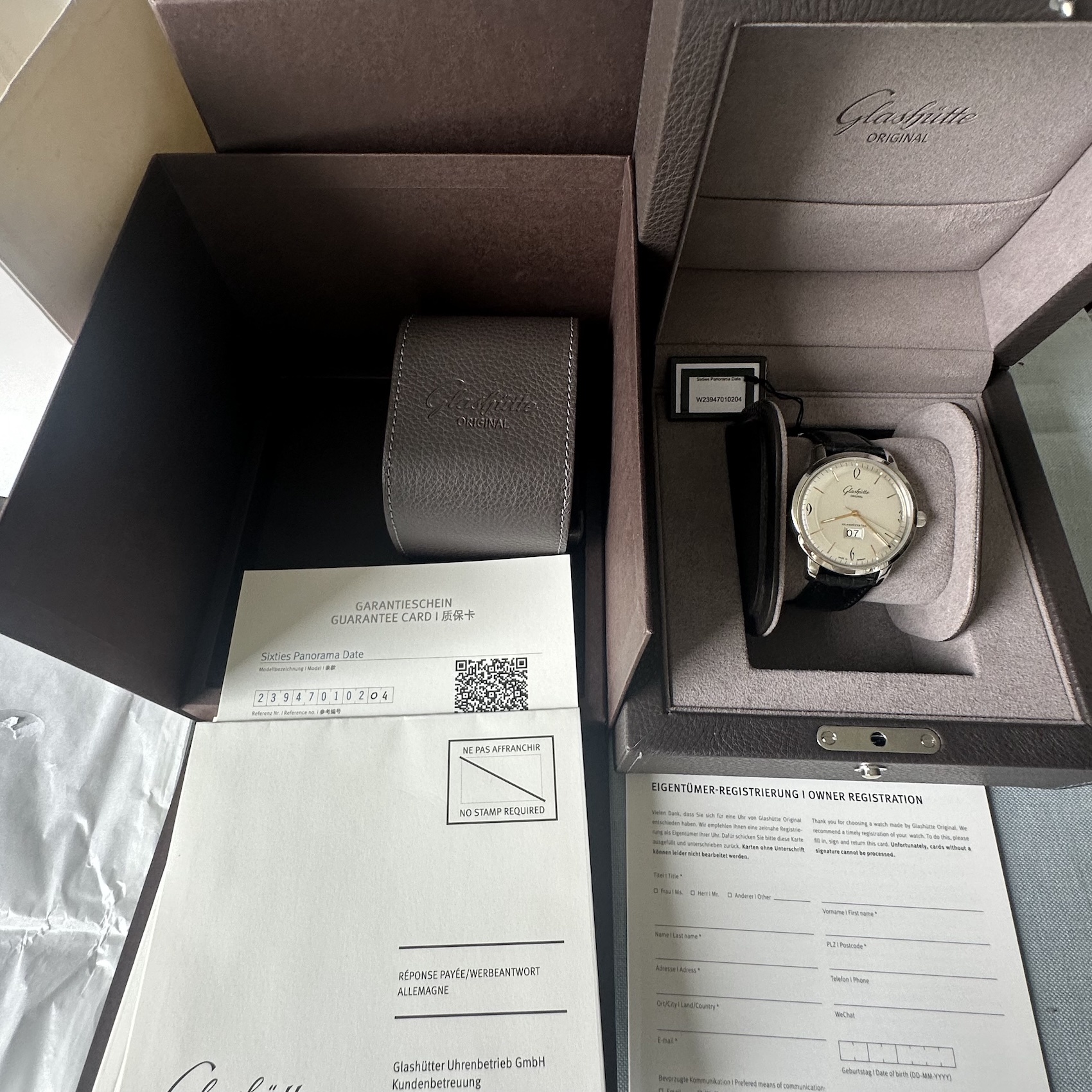 Hier präsentieren wir Ihnen eine ungetragene Glashütte Original Sixties Panoramadatum 42mm Ref.23947010204. Die Uhr wurde 2024 in der Eu gekauft und kommt mit Original Box und Papieren. Gerne können Sie die Uhr in unserem Geschäft in Koblenz zu unseren Geschäftszeiten besichtigten bzw. erwerben. Bei allen Fotos handelt es sich selbstverständlich um Originalaufnahmen der jeweils gezeigten Uhr. Diese wurde unter anderem auf Ganggenauigkeit und Wasserdichtigkeit getestet. Sie erhalten somit stets eine aus Meisterhand geprüfte Uhr.