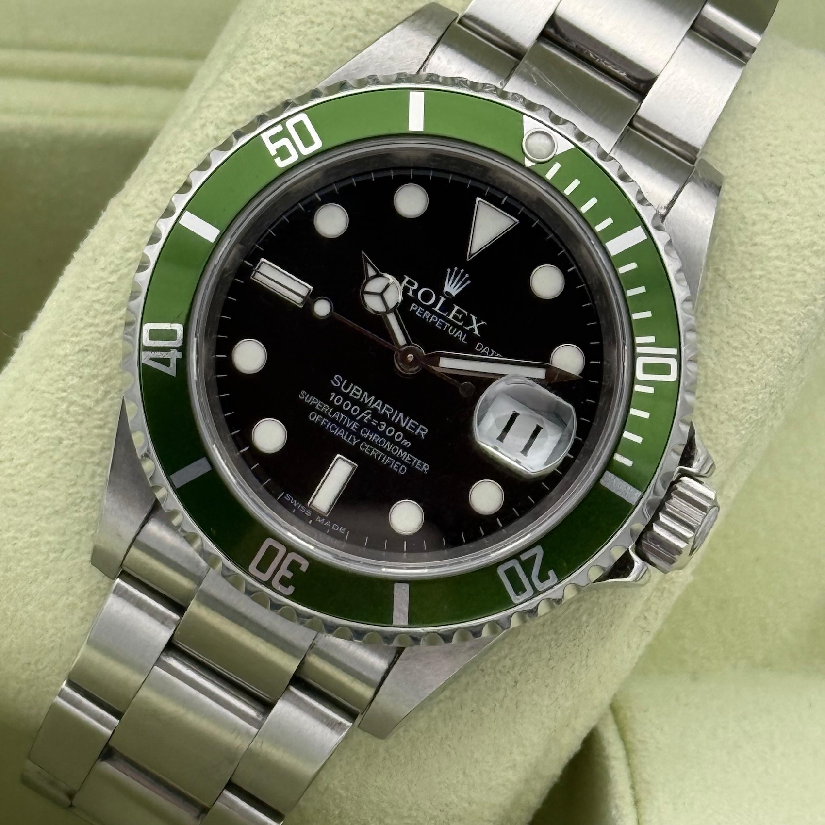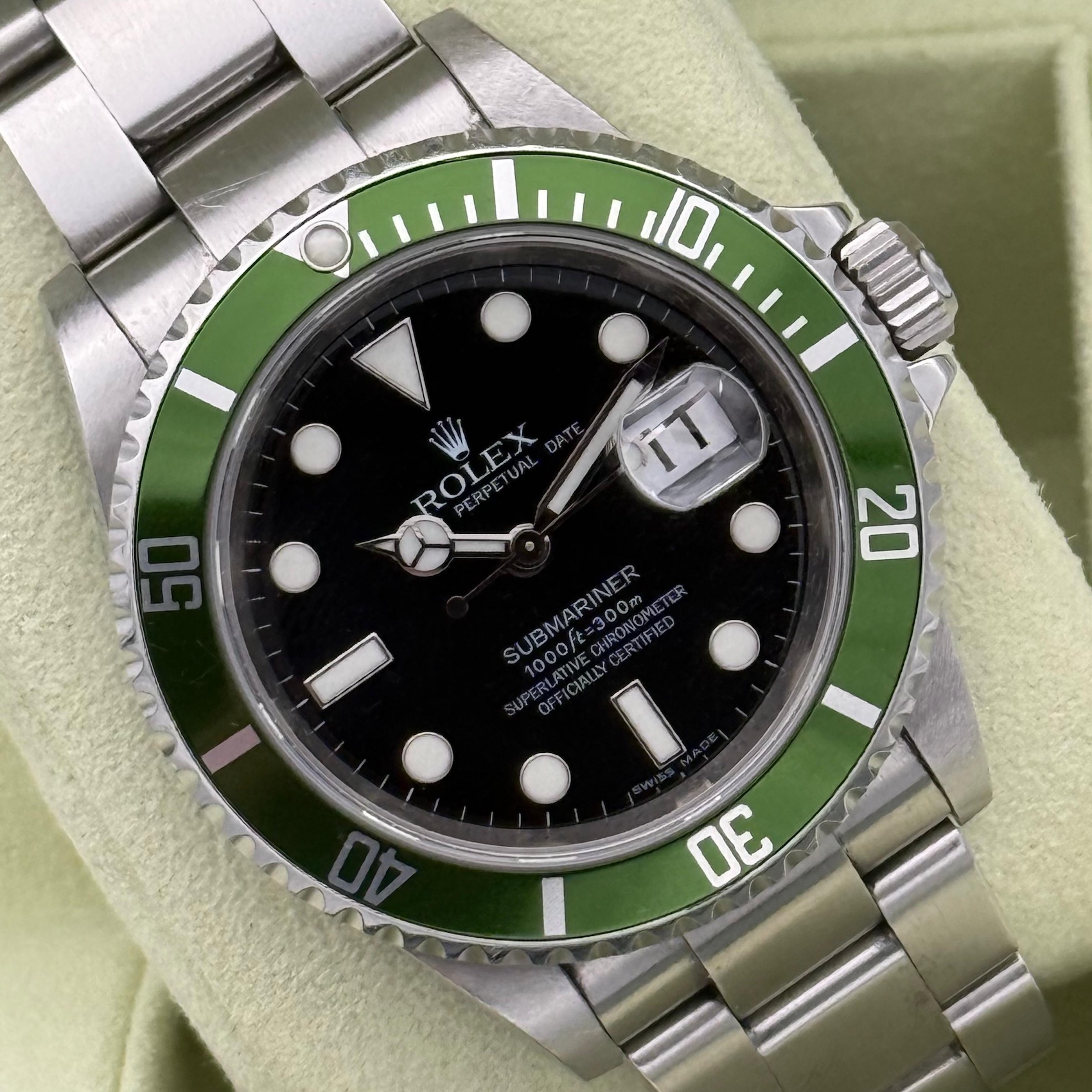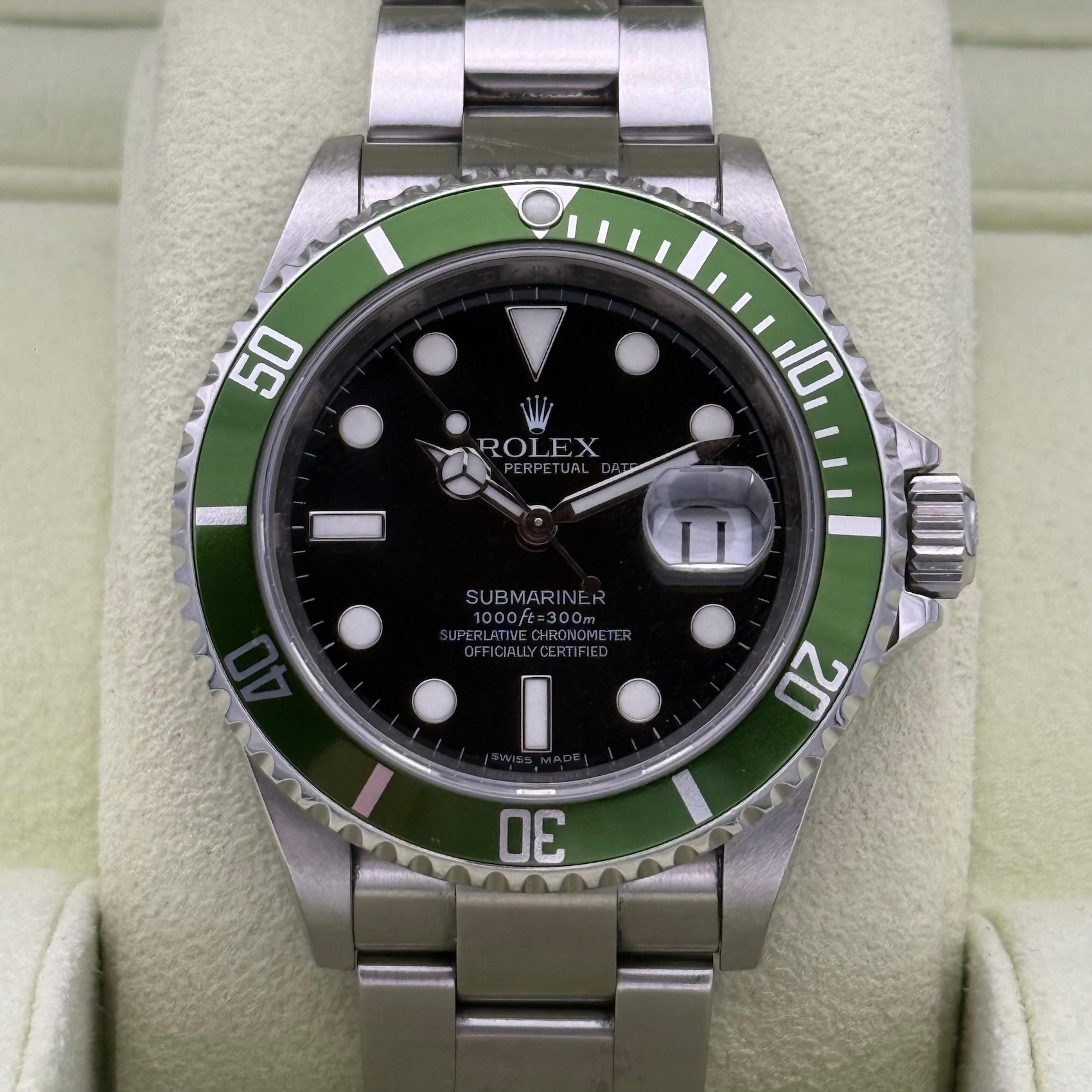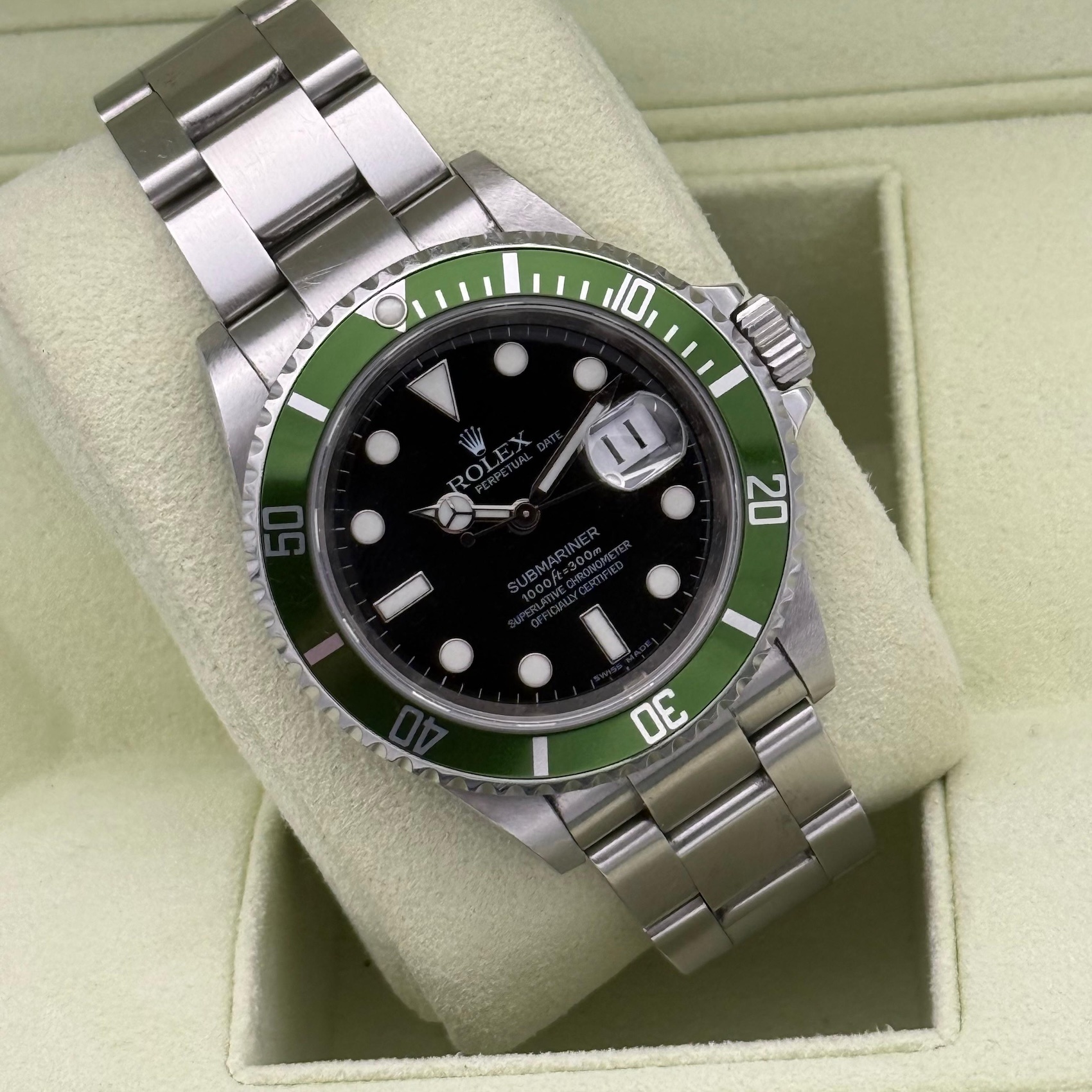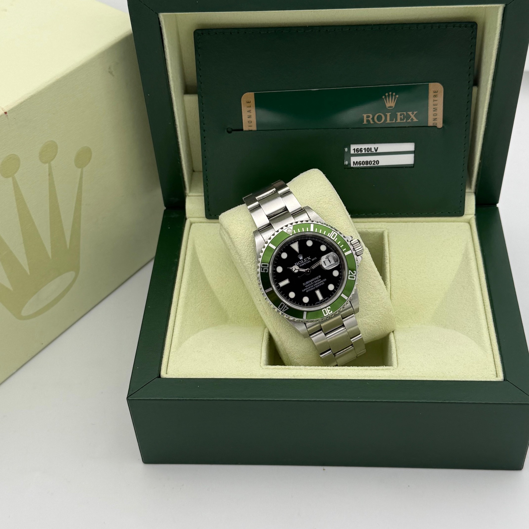 Rolex Submariner Date 16610LV, LC100, 2008, M6.. , unpoliert, unpolished, Kermit, Box & Papers