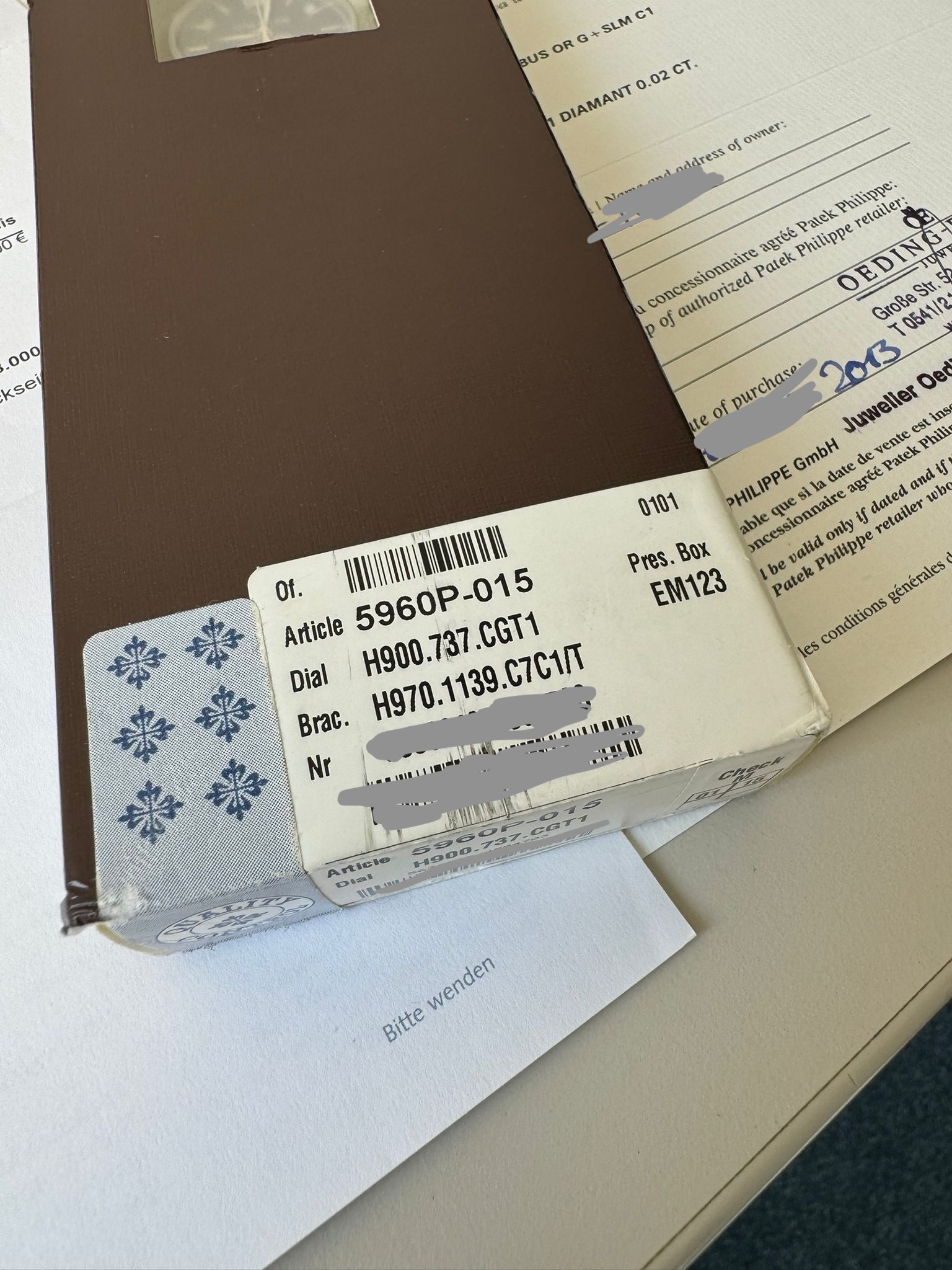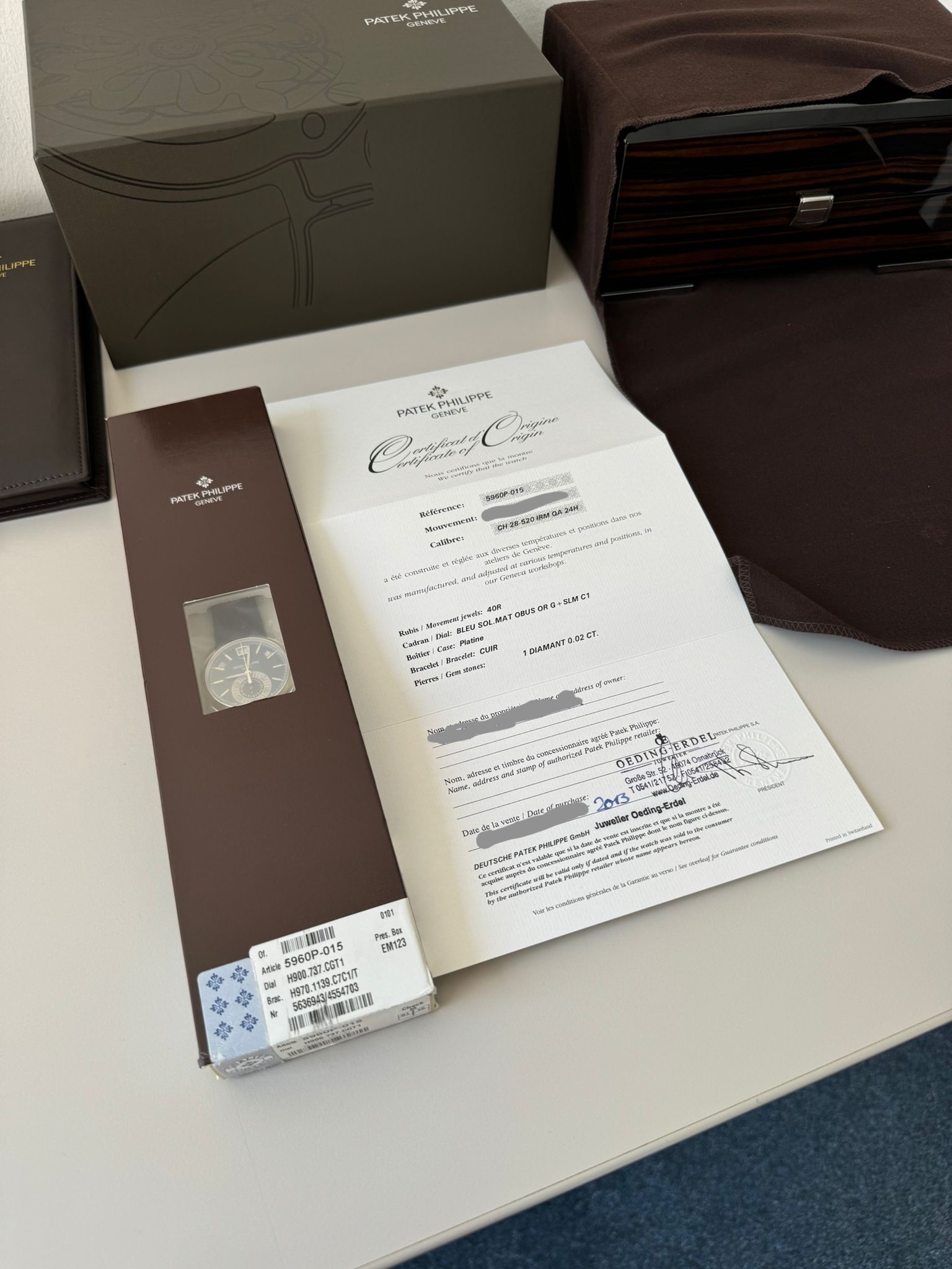 Patek Philippe Annual Calendar Chronograph 5960P-015, LC100, double sealed, 2013, B&P, original sales invoice