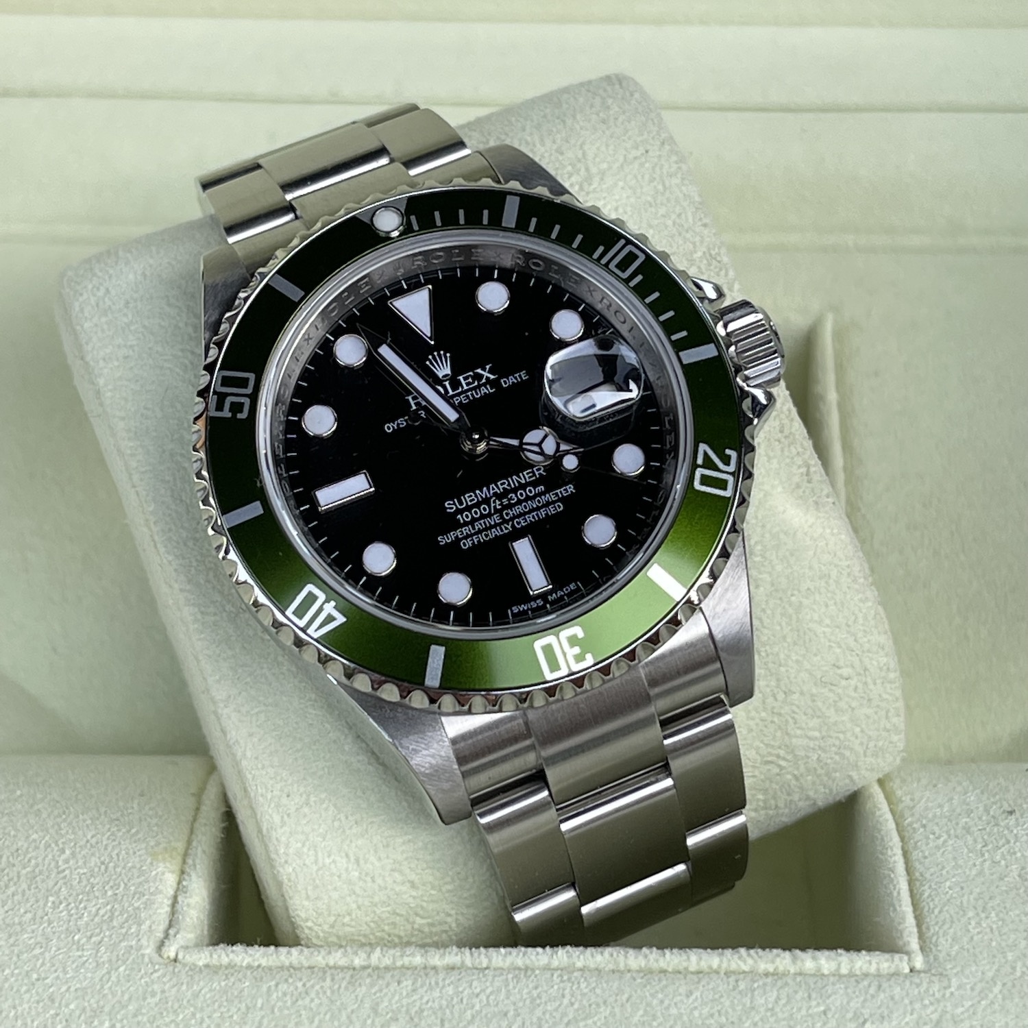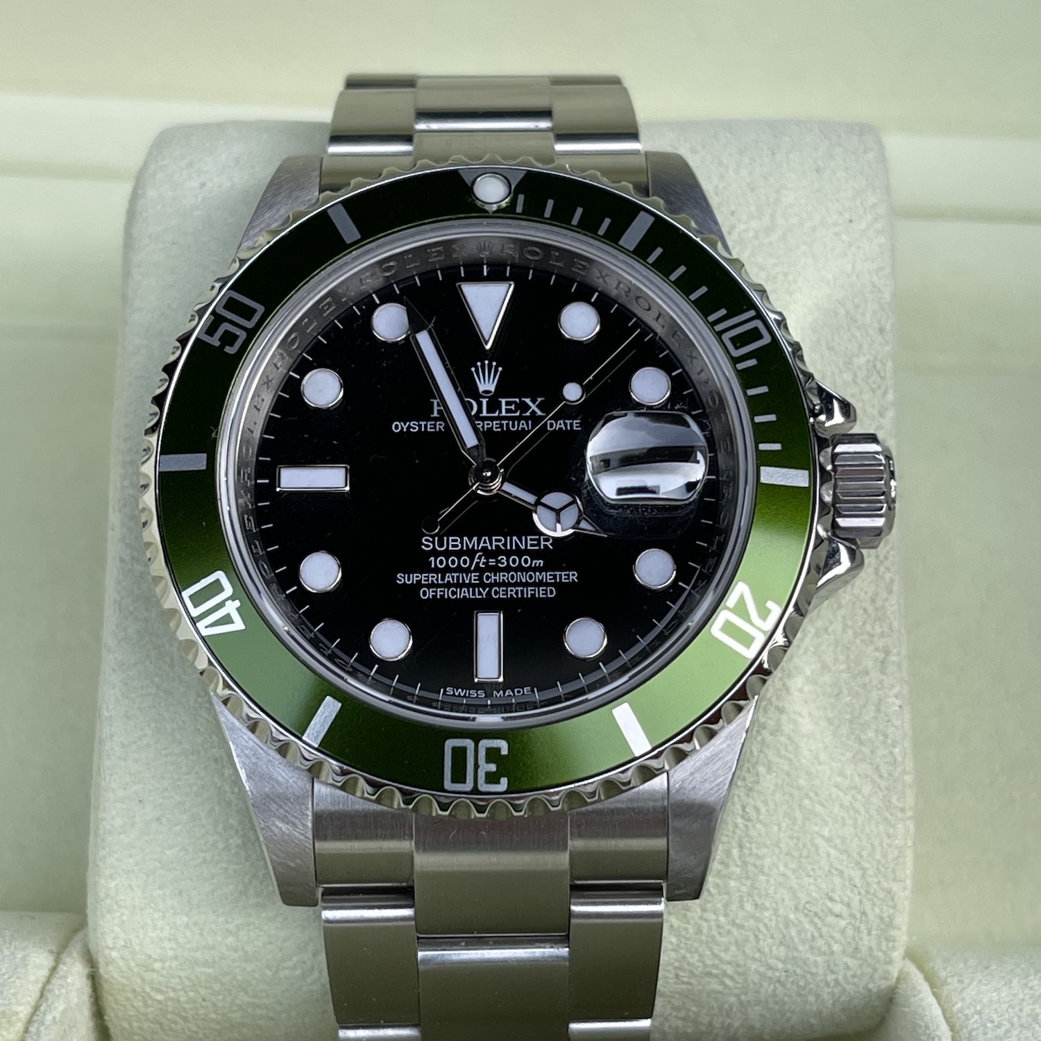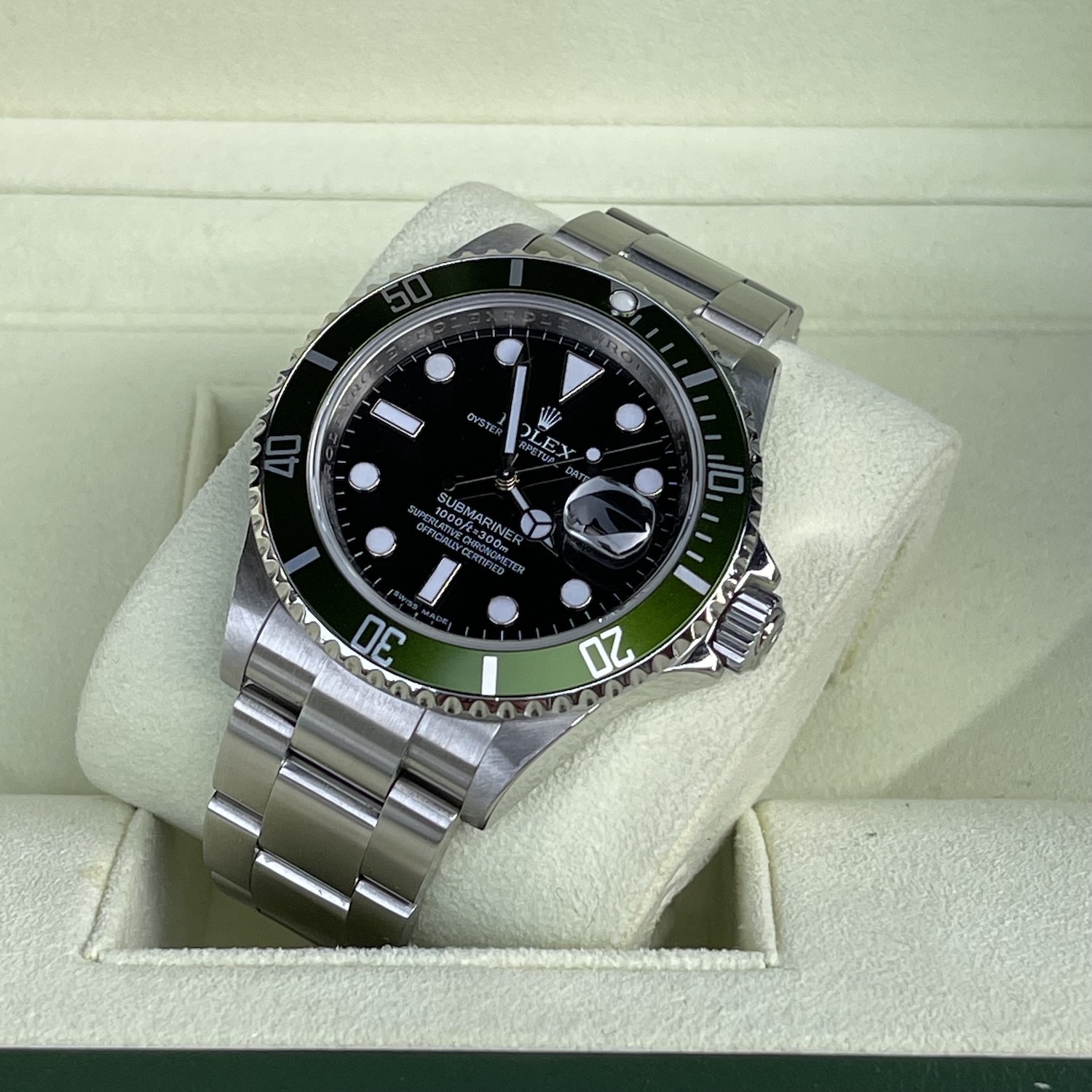 Rolex Submariner Date 16610LV, LC100, 2008, M6.. , unpoliert, unpolished, Kermit, Box & Papers