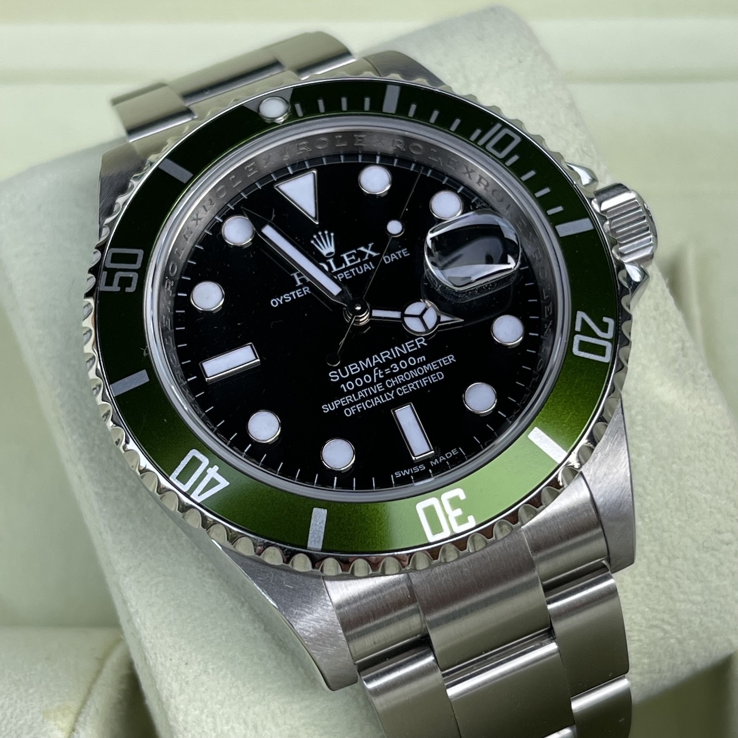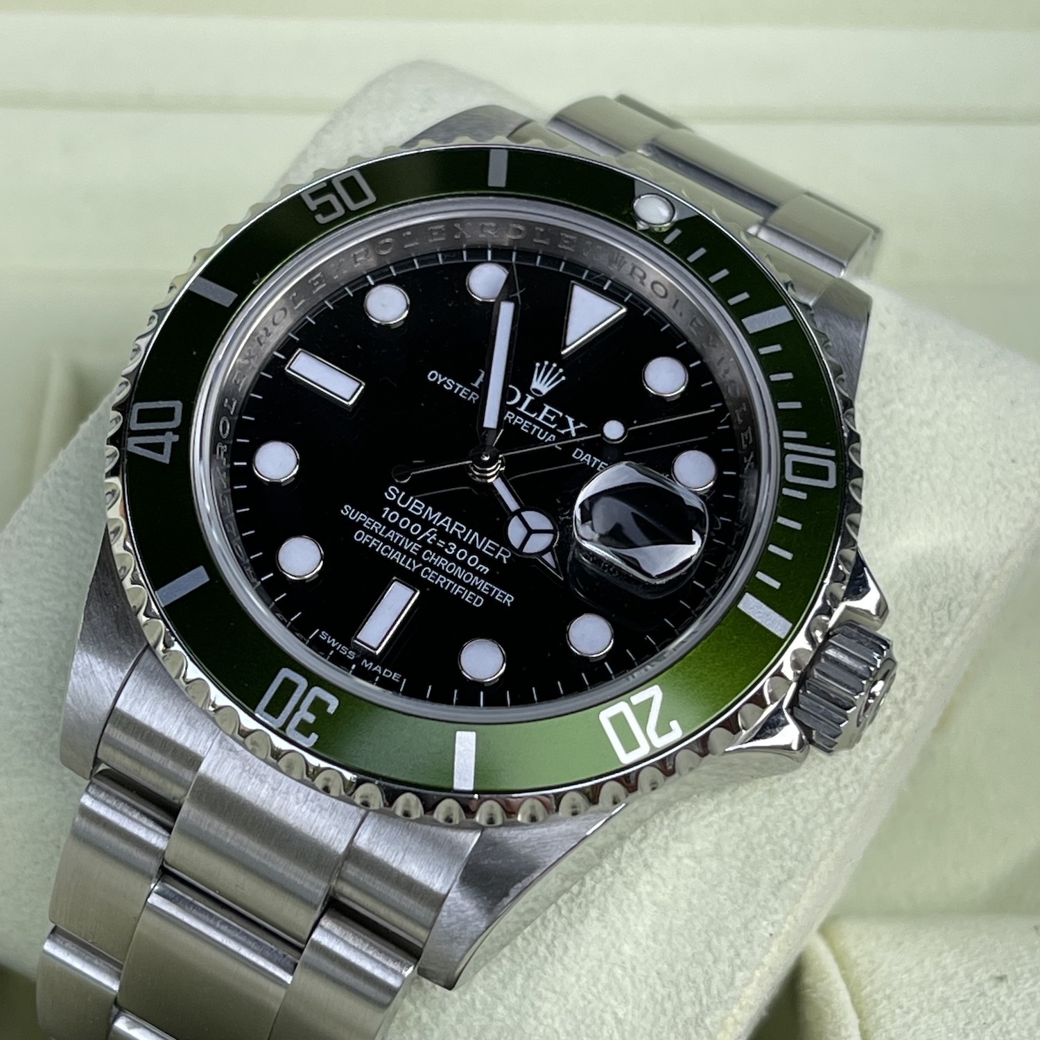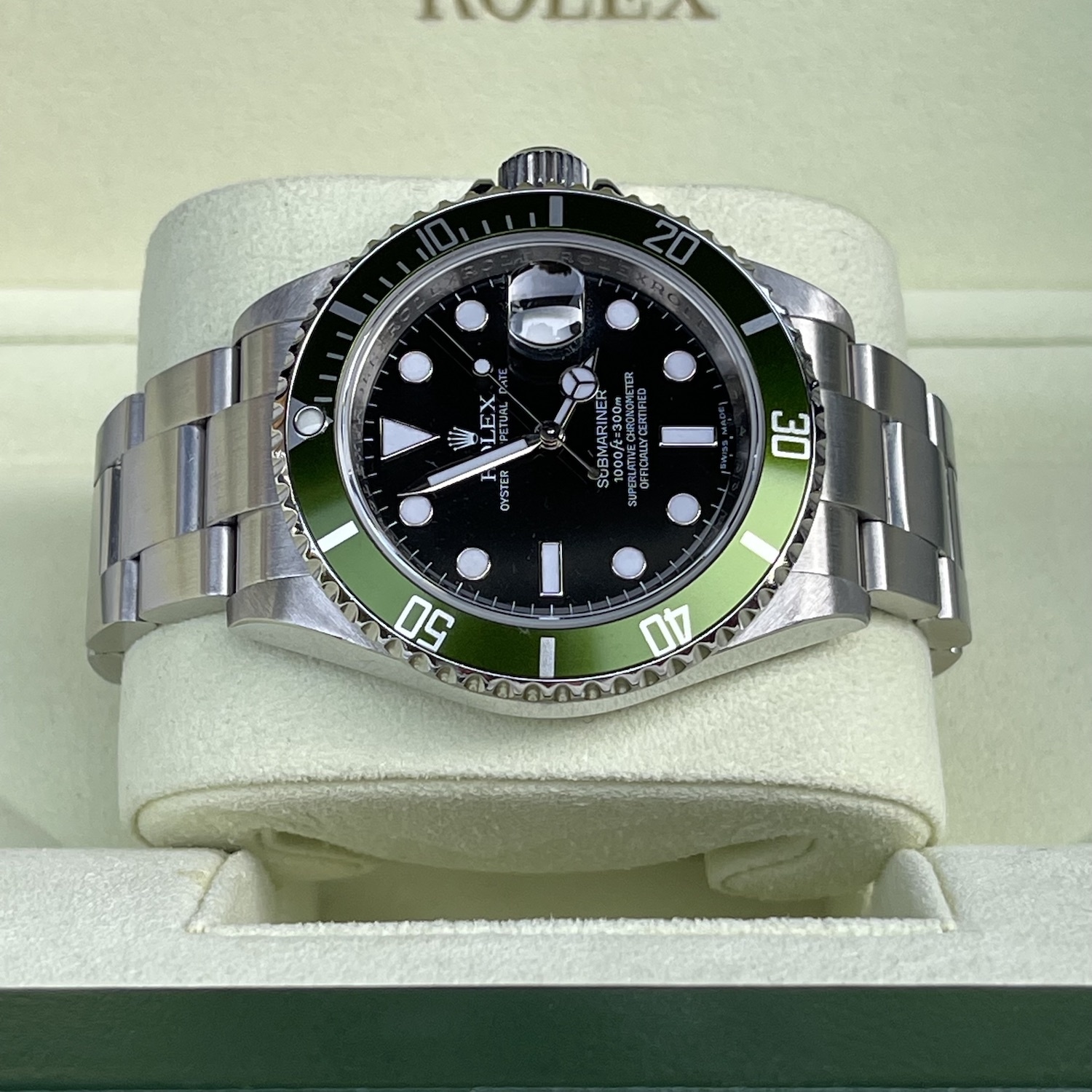 Rolex Submariner Date 16610LV, LC100, 2008, M6.. , unpoliert, unpolished, Kermit, Box & Papers